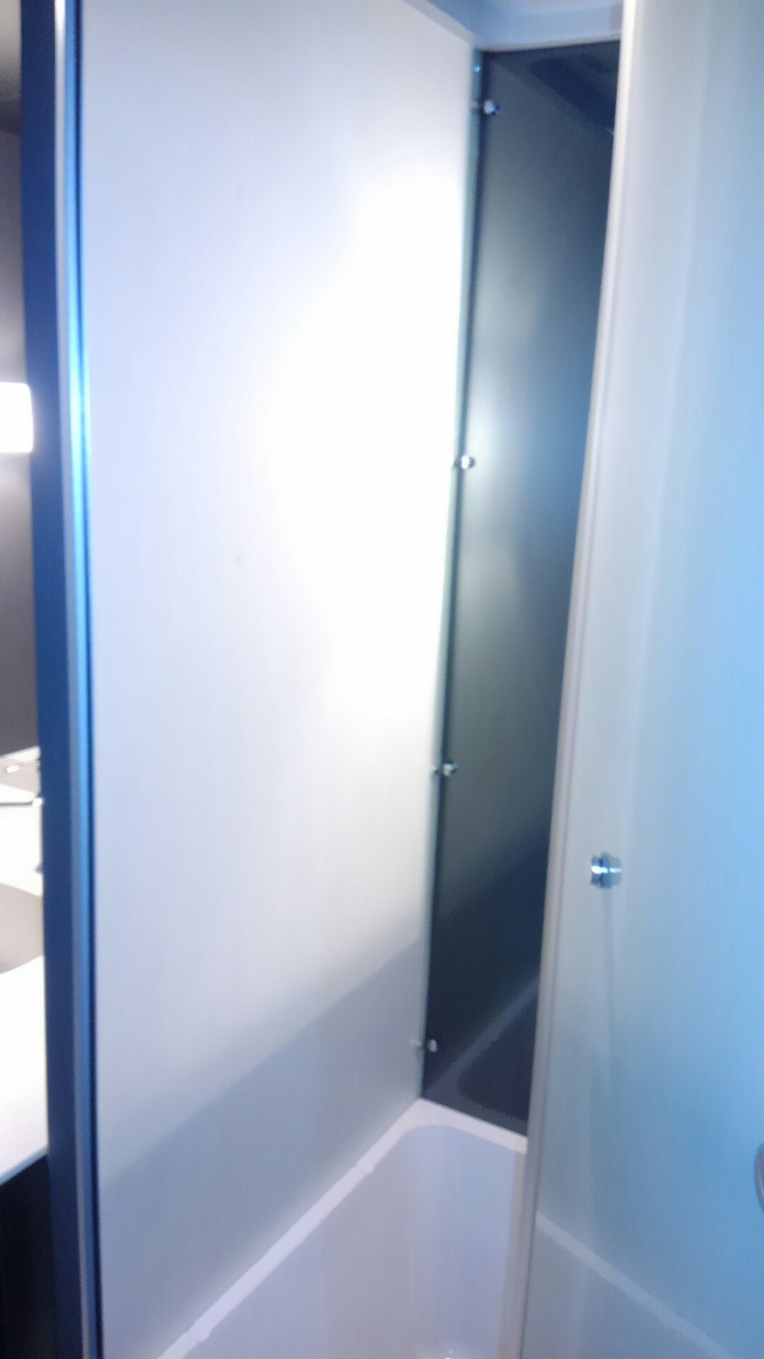 当社のMK-209のシャワーユニットのガラス部分に目隠しでシートを貼り付けた例です。