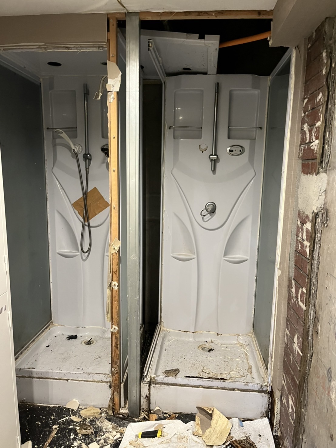 今回はとあるジムからのご依頼で、他社製の輸入シャワーユニットを使用していたようですが水漏れが発覚し急遽弊社のシャワーユニットと入れ替えをご希望ということでお問合せをいただきました。