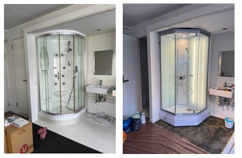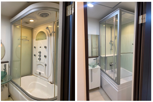 既存シャワーユニットから、MKクリエーション製品への入れ替えを行った事例です。もともと設置されていたシャワーユニットはスライドドアの摩耗等により隙間が発生し、水漏れが懸念されていました。また、海外製直輸入シャワーユニットだったため、部品の交換や修理ができない状態でお困りでした。
