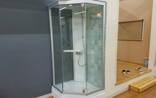 こんにちわ!エムケークリエーションです。MKのシャワーユニットは組み立て式で完全防水を実現した商品です。防水空間ではない…