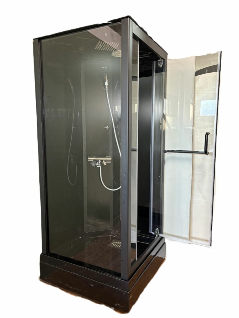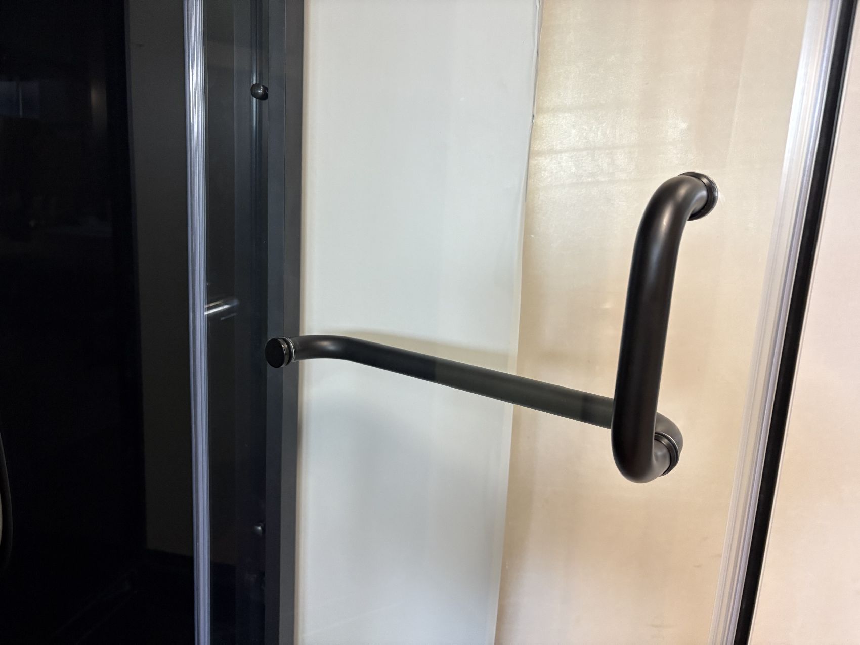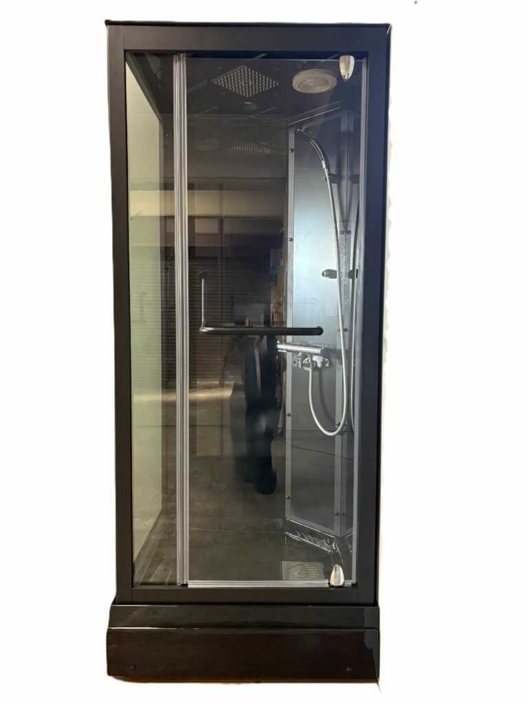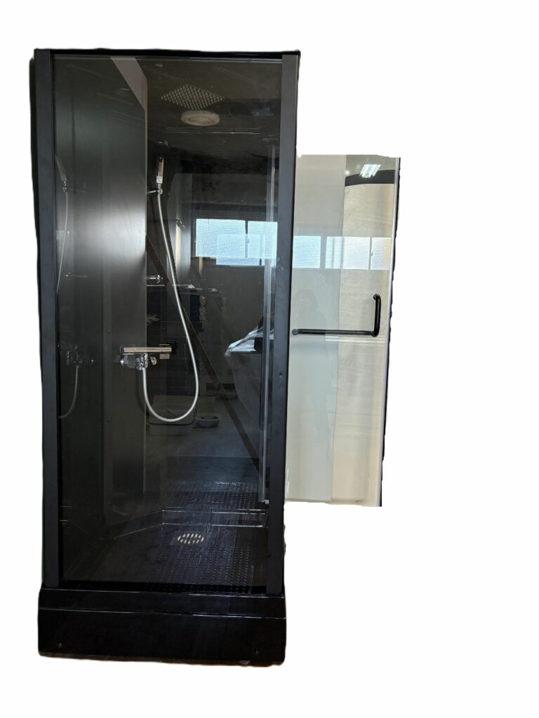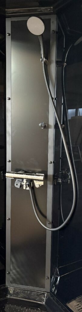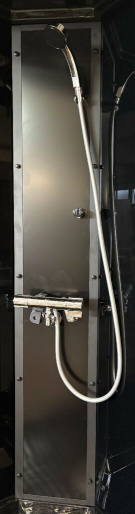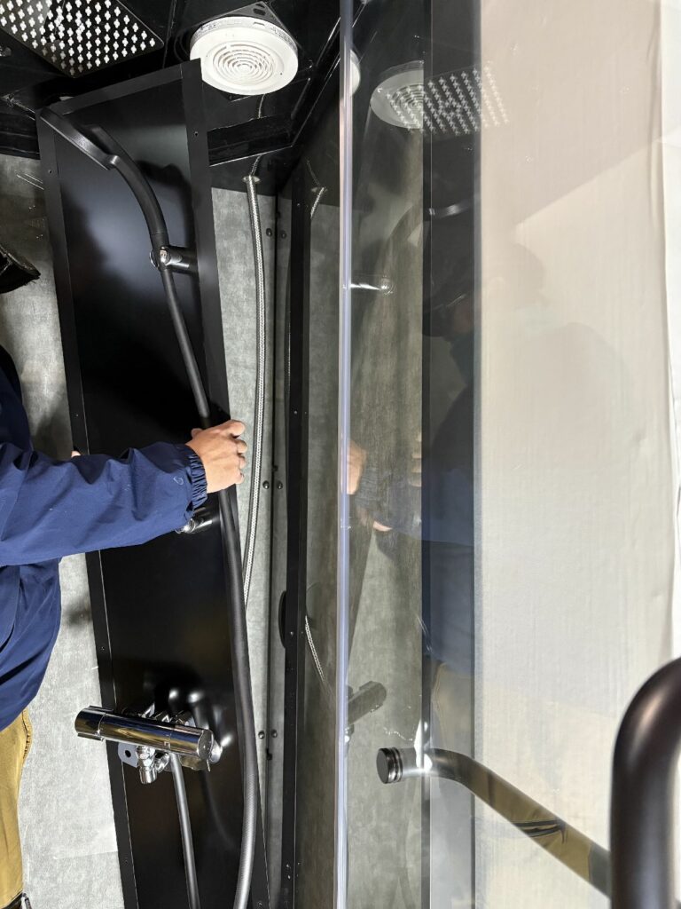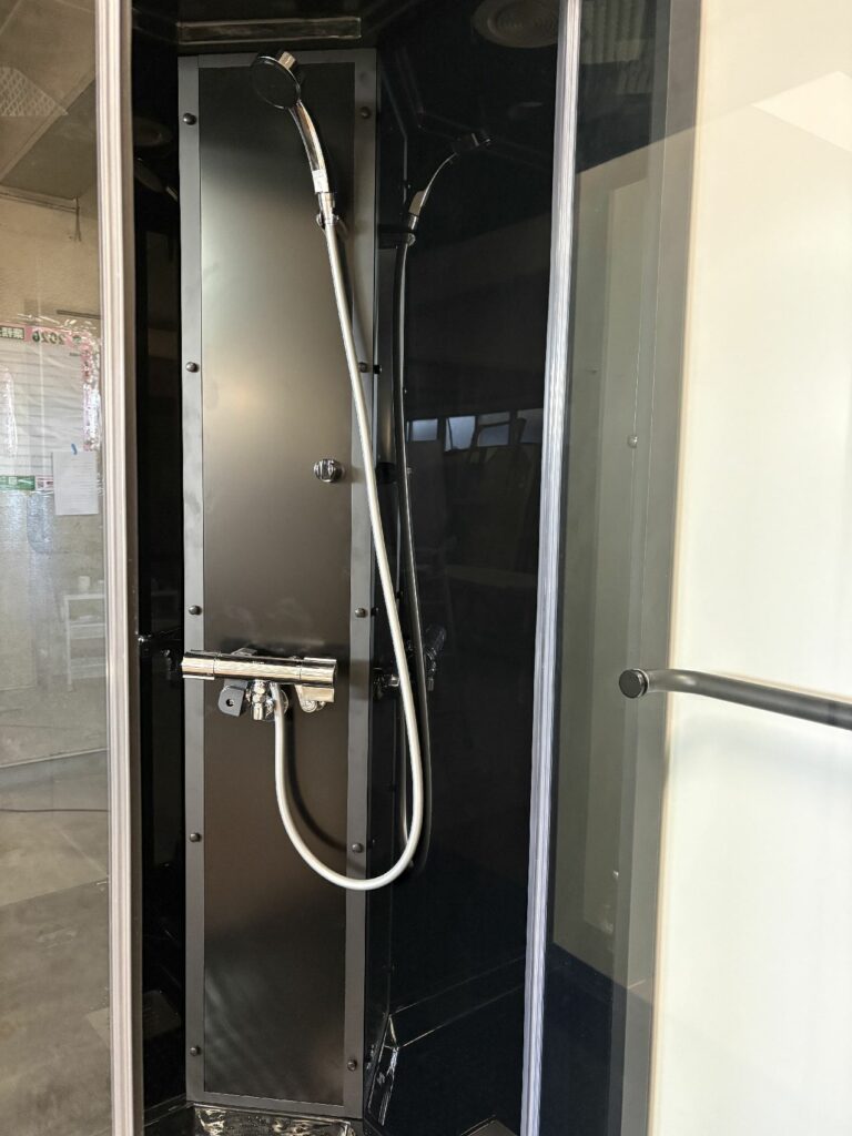 オールブラックで仕上げたシャワブースは、高級感があり、スタイリッシュです。