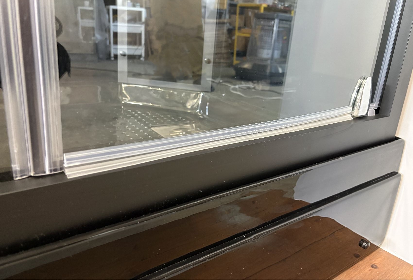 ドア周りにパッキンがあり、ドア開閉は磁気パッキン、ドア下には水除パッキンがあり、水漏れを防止します。