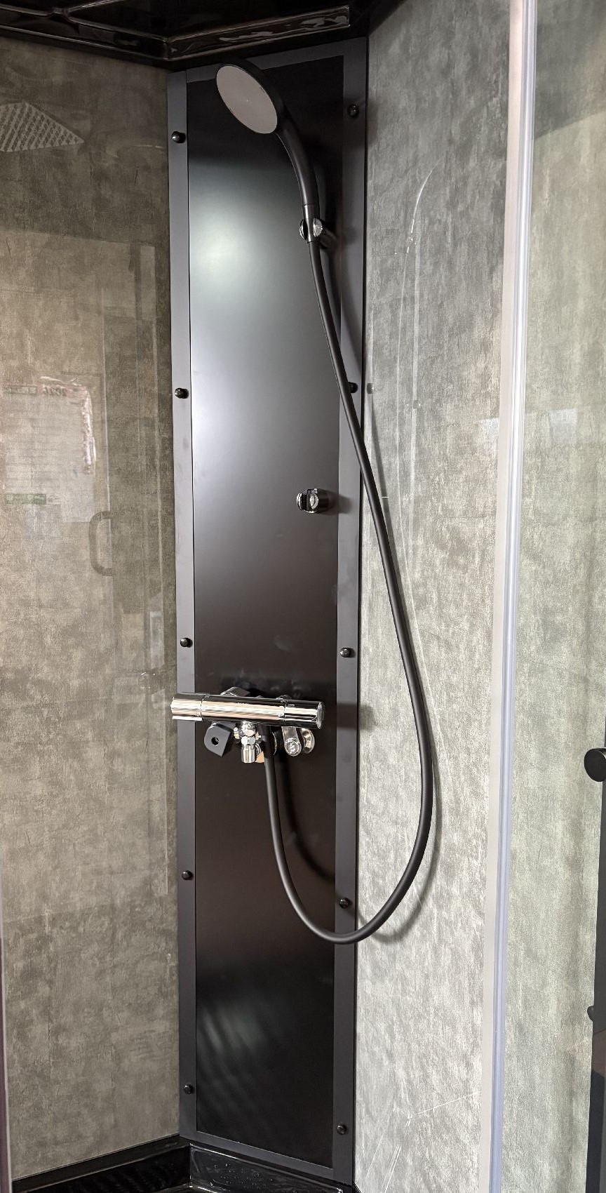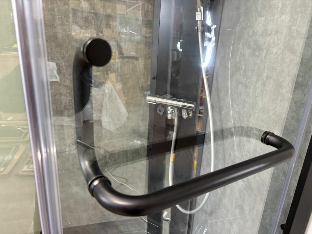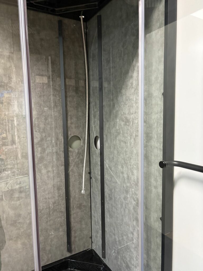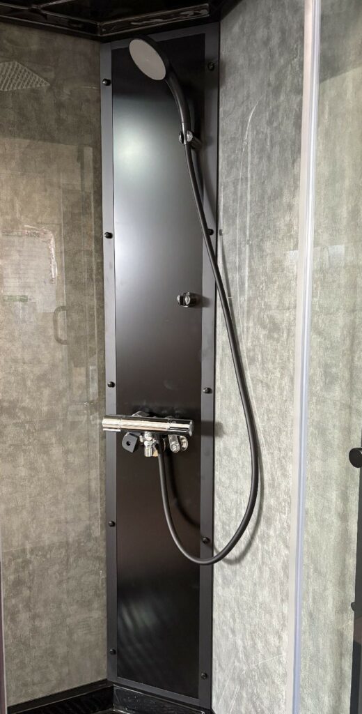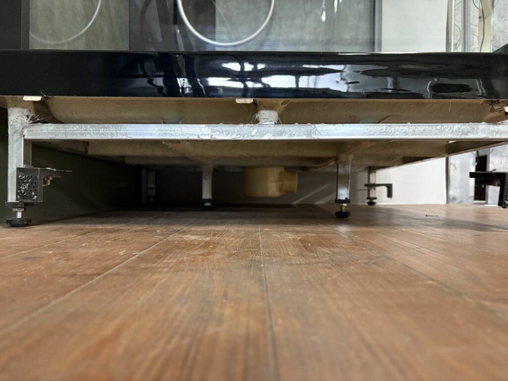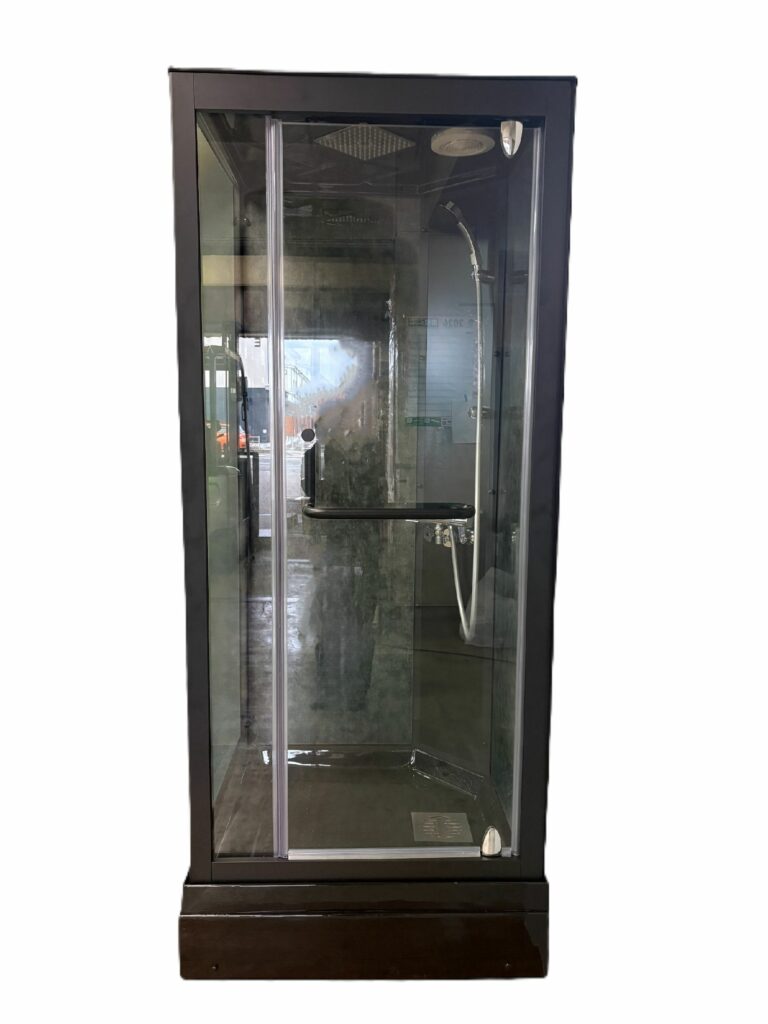 ブースの中から、給湯給水やレインシャワーのメンテナンスができ、ベースエプロンが外れ、排水の点検もできます。