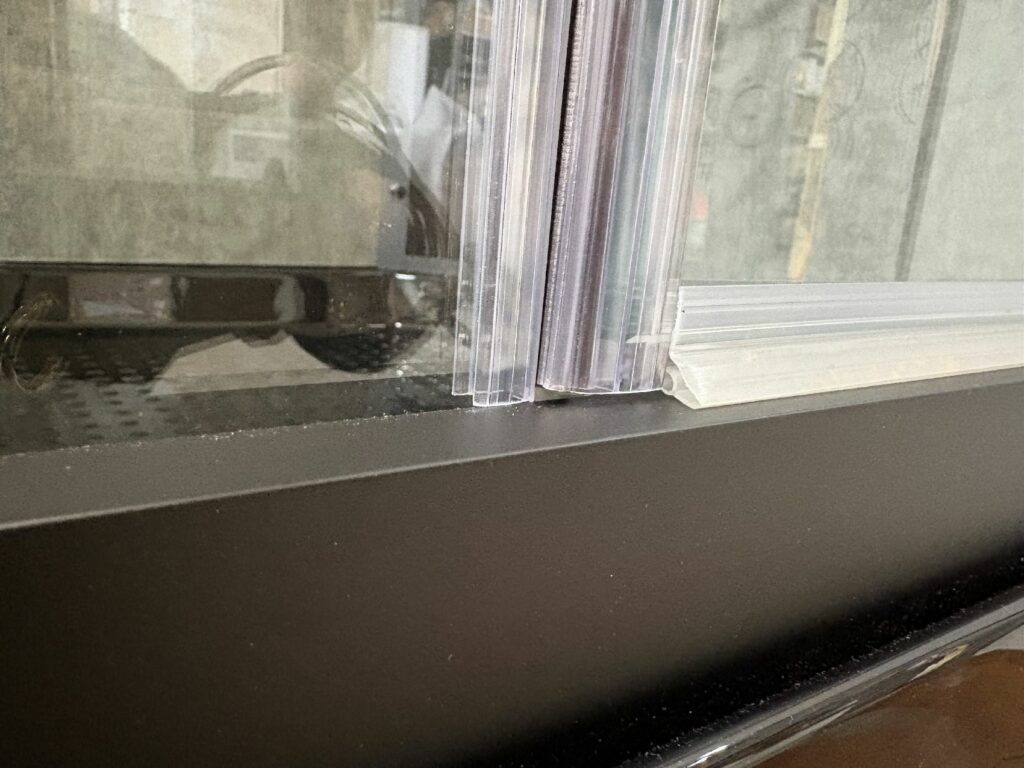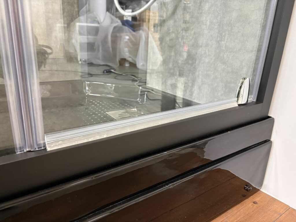 ドア周りにパッキンがあり、ドア開閉は磁気パッキン、ドア下には水除パッキンがあり、水漏れを防止します。