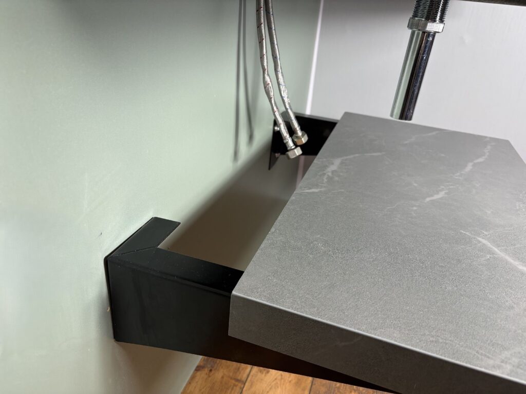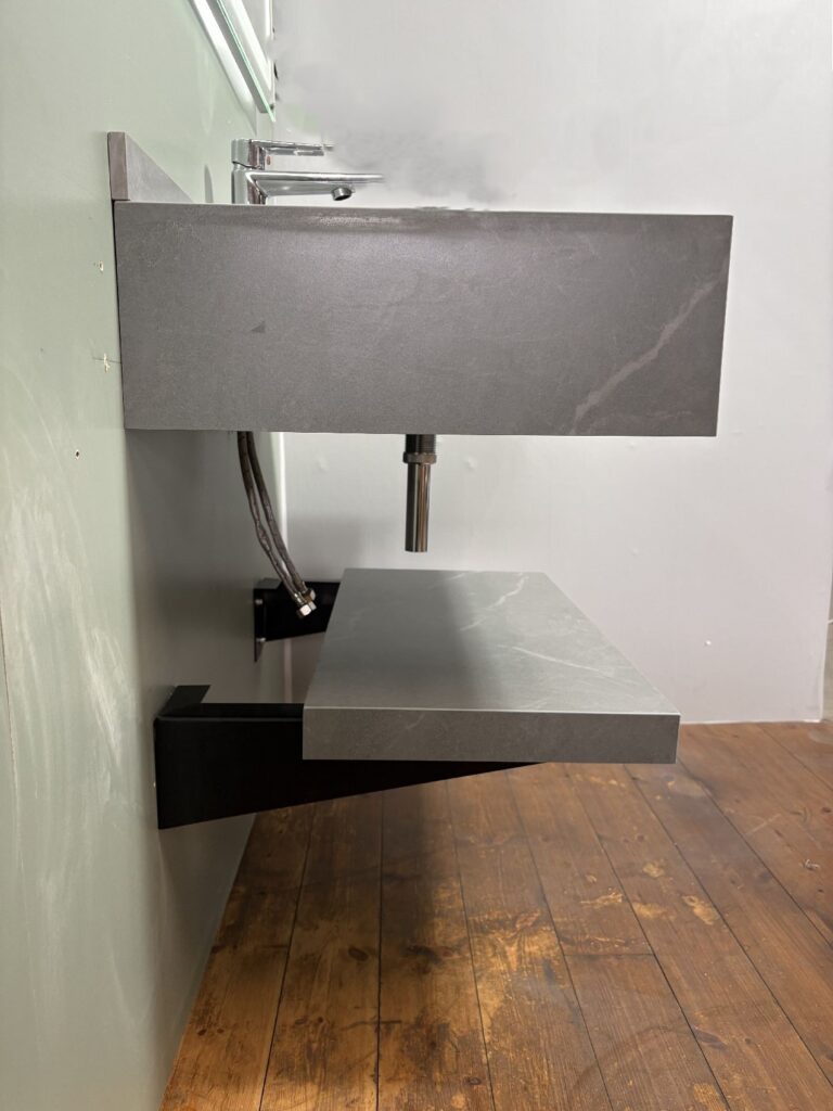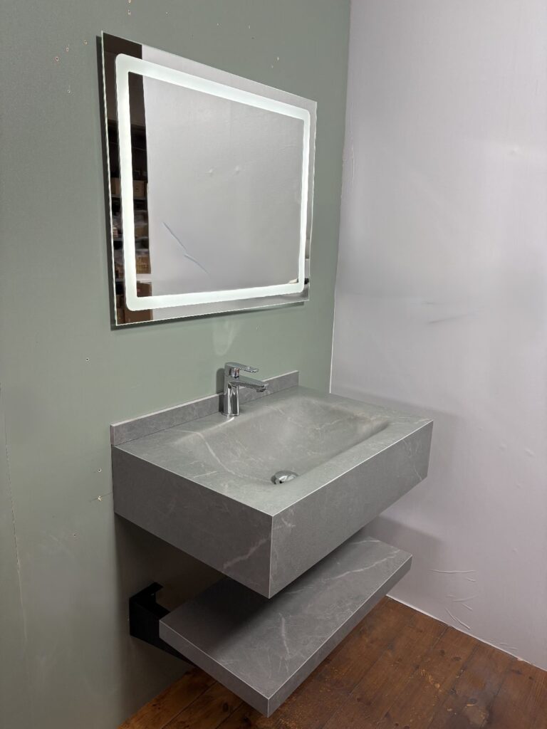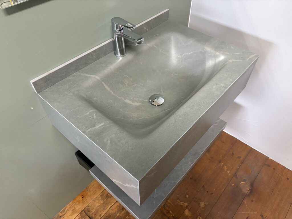 ボウルの曲線が、大理石柄とマッチし、とても綺麗で、重厚感があるモダン洗面台です。